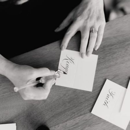" [She] was phenomenal! Not only does she have beautiful calligraphy, but she also goes above and beyond to make sure her clients get exactly what they're envisioning! Guests loved working with her at our event, and we will definitely use [her] again for any calligraphy needs! "