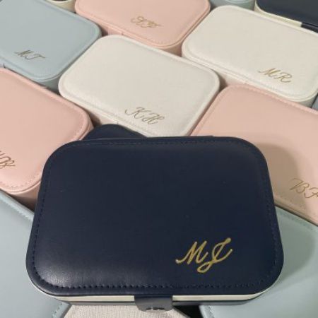 • Heat Foiling – This service provides a permanent brilliant metallic personalization in gold, silver, or rose gold. This can be done on vegan or genuine leather. It can also be done on paper and boxes. This service is more time-intensive and is better for smaller events.