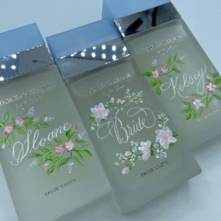 Beautiful florals can be painted on items. Popular items are fragrance bottles, wine bottles, and ornaments. This is a slower service that is best suited for small events.