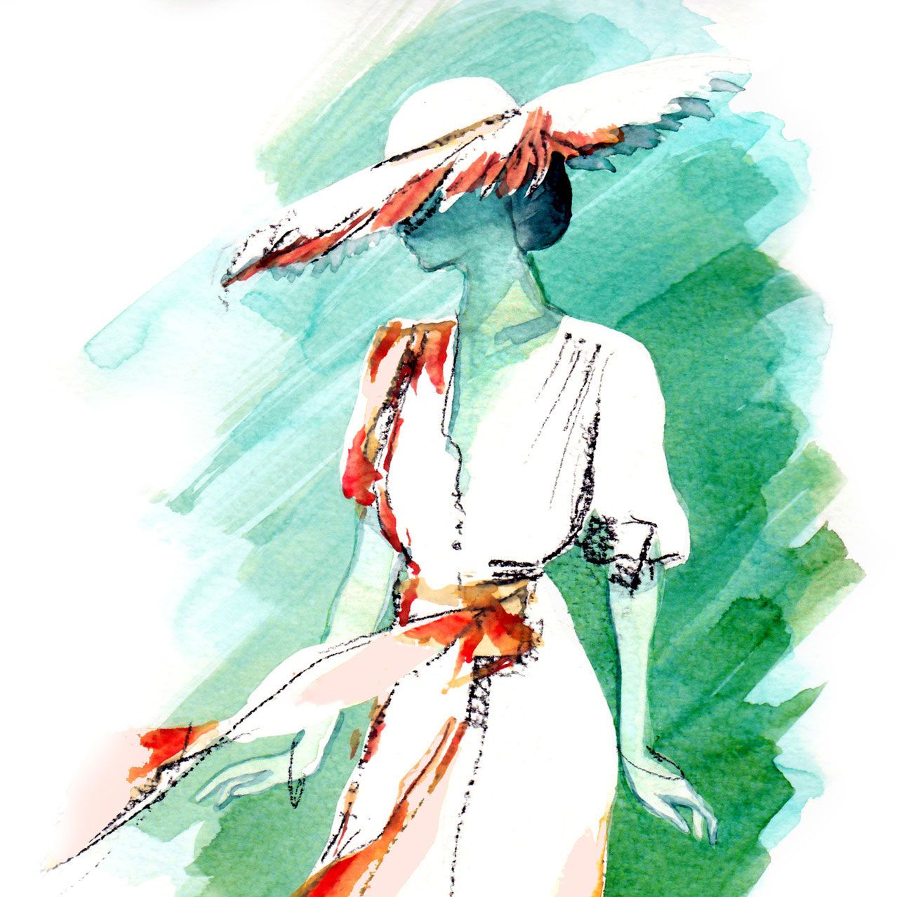Talented and versatile fashion illustration artist uses different techniques such as ink and watercolour