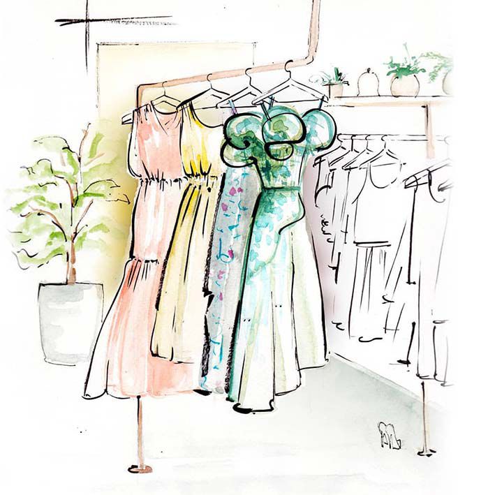 Previous clients include fashion boutiques and prestigious clients. She can personalise her illustrations with a logo, name or date upon request