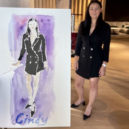 This professional artist creates live fashion illustrations, capturing guests’ outfits in watercolour on paper or as digital sketches