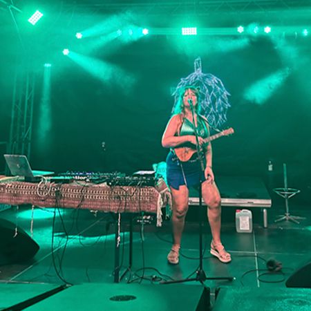 Onstage, she skillfully blends techno, drum N bass, and trance with her original songs and instrumental pieces, creating an immersive experience