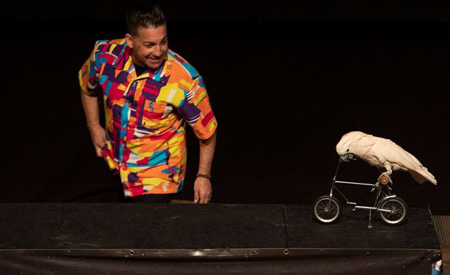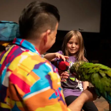 A skilled trainer and entertaining performer, his live parrot shows offer guests of all ages the chance to interact with the birds
