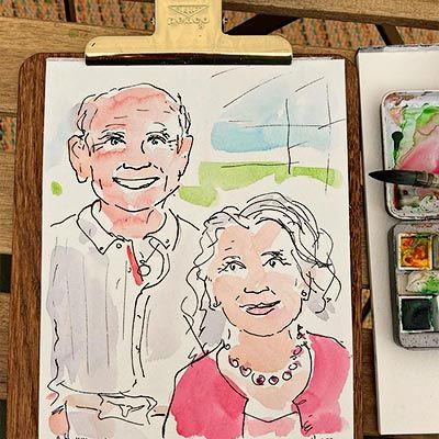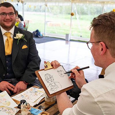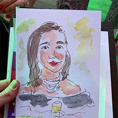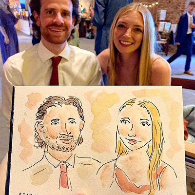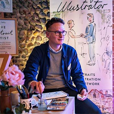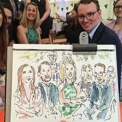 Based in Norwich, our illustrator is available to paint portrait illustrations at corporate events, weddings and product launches