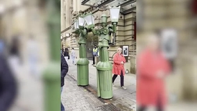 Their carefully constructed costumes are made to resemble old-fashioned or elegant Victorian lamp posts and they do actually light up