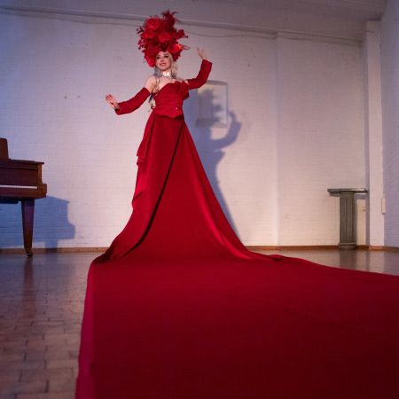 To suit the occasion, our party greeter can customise make-up and accessories and the 6m gown can be adjusted in length and set up over stairs