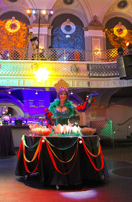 The brilliant Living Table Girls are extremely versatile. Not only can they be booked for serving a variety of drinks, cocktails, hors-d'oeuvres, desserts or corporate gifts and branded giveaways, but the strolling tables are also available as interactive games such as poker table, fortune teller giving psychic readings and much more.