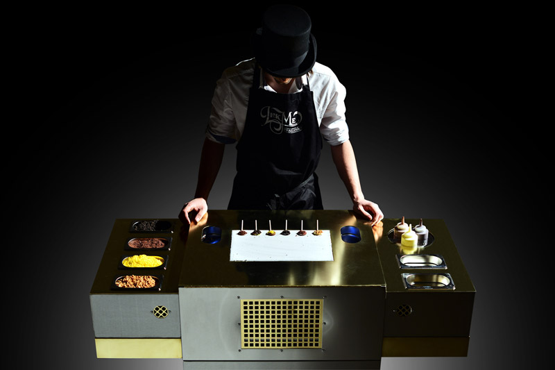 This innovative food act can be hired all day for large exhibitions with two dedicated lollipop specialists manning the stand! For events of this nature companies can distribute the branded lollys to guests in order to encourage interest in their stall. An artistic and delicious promotional tool, the Lollipop Logo Machine has been hired by numerous high profile clients including Google, Disney, LinkedIn and Jamie Oliver.