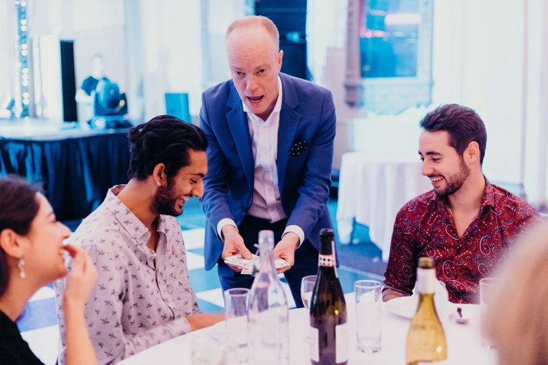 Want to treat your team to a special night out, or impress some clients at a networking event? Our event magician will amaze your guests with close up magic over drinks or dinner and make sure it’s an evening they’ll remember for a long time.