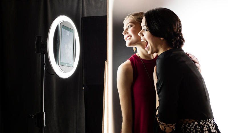 Sophisticated and easy-to-setup standalone selfie booth with touchscreen and in-built LED light