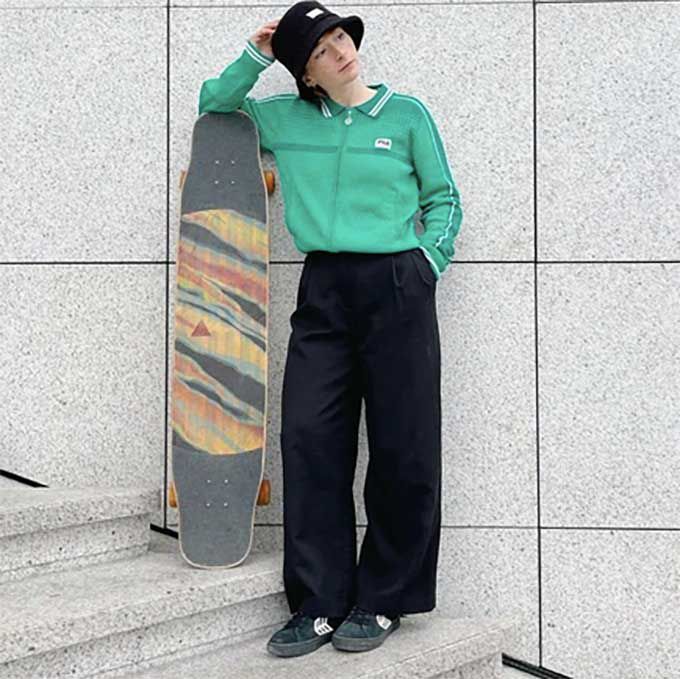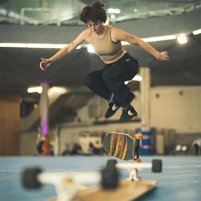 Boasting a mesmerising performance, our skater appears to float above the ground, dancing as if the longboard does not exist and she is levitating