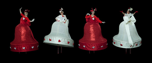 Brilliantly unique characters, these love themed stilt artists provide sensational walkabout entertainment, and will create a joyous atmosphere wherever they go. Dressed in spectacular bell-shaped costumes, our wonderful roaming performers come in a variety of red and white outfits, complete with props, ribbons, and hair pieces, and are certain to grab attention at your special occasion as they tower above guests, handing out heart-shaped sweets and making it an unforgettable event.