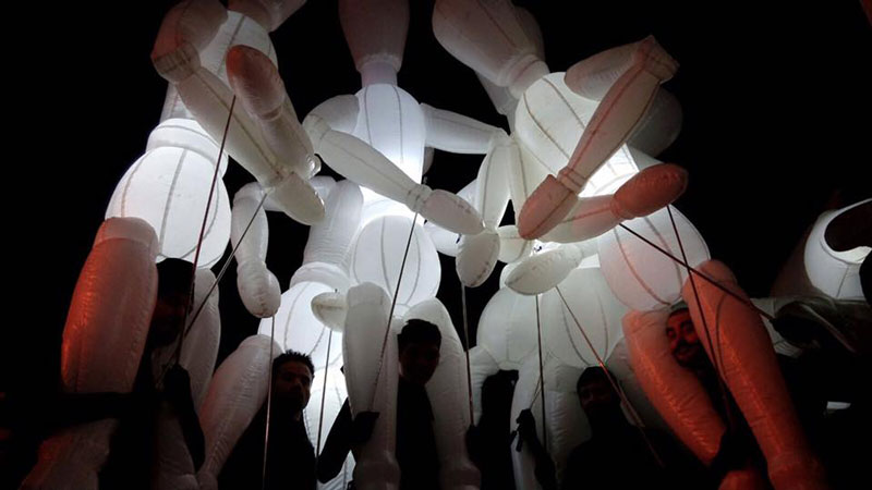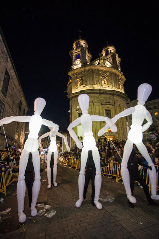 Why not have our giant puppets form a roaming parade? Wandering through streets, across festivals, gardens, or large venues, our crowd of eerie figures cast beautiful shapes of light as they pass by guests. Perfect for any light festival, night time parades, cultural celebrations, and corporate events such as launches and openings, our giant puppets will add a sprinkling of luminous magic to your occasion.