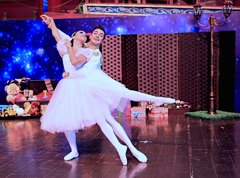 The soldier’s curiosity leads him to open the box and discover the beautiful ballerina doll inside. Captivated by her beauty and magic, the soldier falls in love. As both develop feelings for each other, a fairy godmother grants the soldier a wish and transforms the doll into a real ballerina, allowing them to be together and live happily ever after.