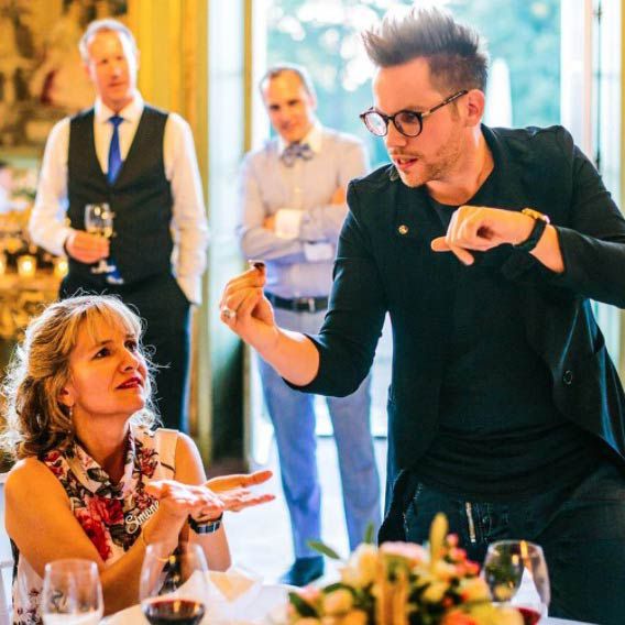 Based in Switzerland, he is able to bring magic and a little bit of mind-bending mayhem to weddings, celebrations and trade events worldwide