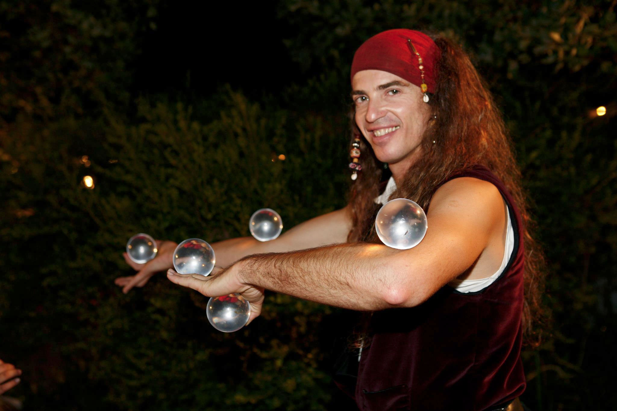 In the last few years Sylvain has created a stage character, inspired by the captivating character of Jack Sparrow from "Pirates of the Caribbean", and created his own show, based on a unique artistic cabaret number combining juggling and magic.