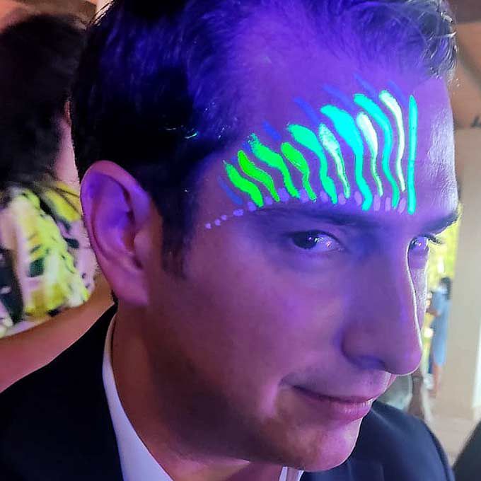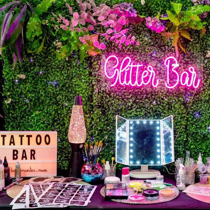 She uses a range of quality products to create her striking looks and offers services that include neon paints, glitter, gems and special effects