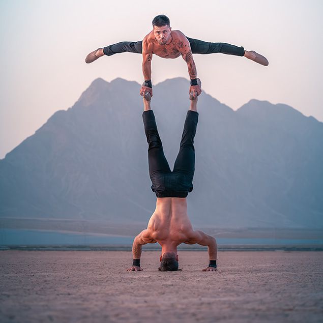 Specializing in the hand-to-hand discipline, their performances highlight extreme physical control, precision timing, and unwavering connection