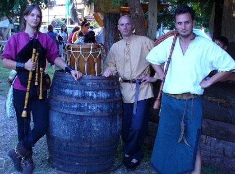 The Mediaeval Trio recreate the atmosphere of a mediaeval-themed event by playing evocative, scene-setting music, from the soft, romantic ballads of mediaeval Italy to rousing songs and dance tunes. Wearing themed costumes the group use instruments ancient & modern to present authentic medieval music & song. The musical instruments used are bagpipes, recorders, hurdy-gurdy and drums of various kinds (bandolier drum, tambourine).