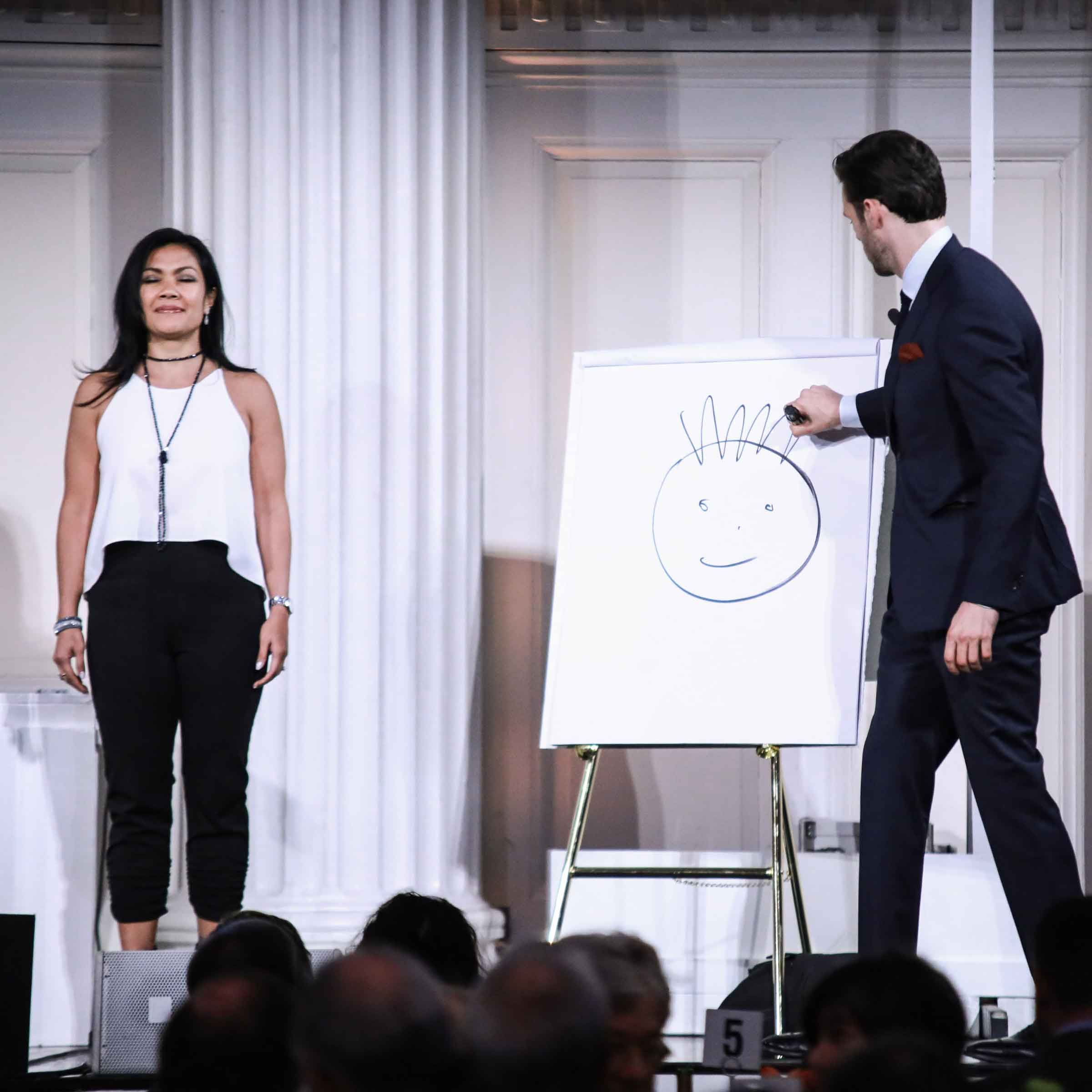 In his fantastic close up magic act, our NYC mentalist magician will mix and mingle with your guests and baffle them with exciting mind reading demonstrations including: guessing pin numbers, sketching images they’re thinking of, revealing memories, and much more.