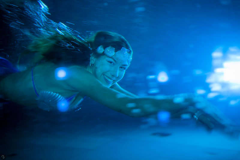 These real life mermaids’ tails and hair accessories come in a variety of colours. One or many mermaid entertainers can swim and play around at your party and encourage people to join the fun by splashing into the water and swim with them.