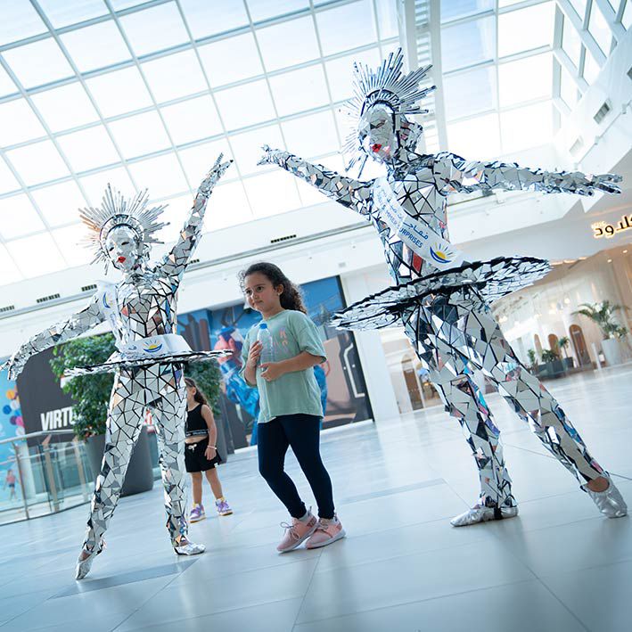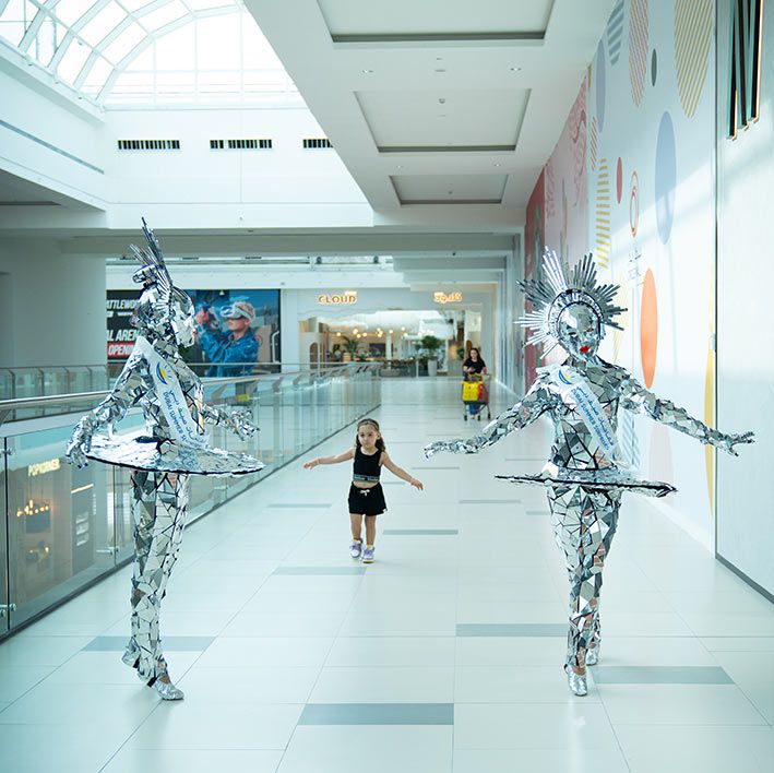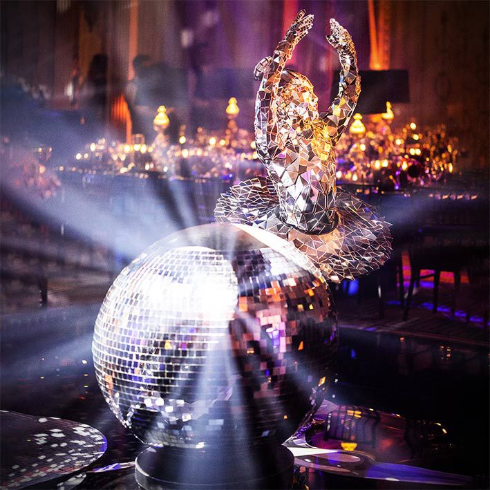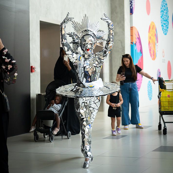 A dazzling take on the traditional ballerina costume, our mirrored ballerinas shimmer and shine as they glide around your event