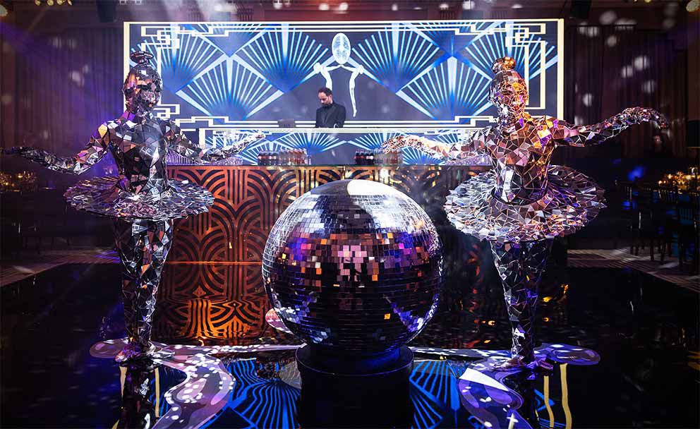 An eye-catching option for receptions and mix-and-mingle events, our shimmering, graceful mirror ballerinas are available for events worldwide