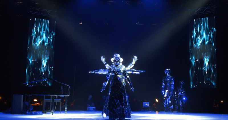 Choose from regular mirror people dancers or mirror skeleton dancers to perform a show movement, light, colour, and magic