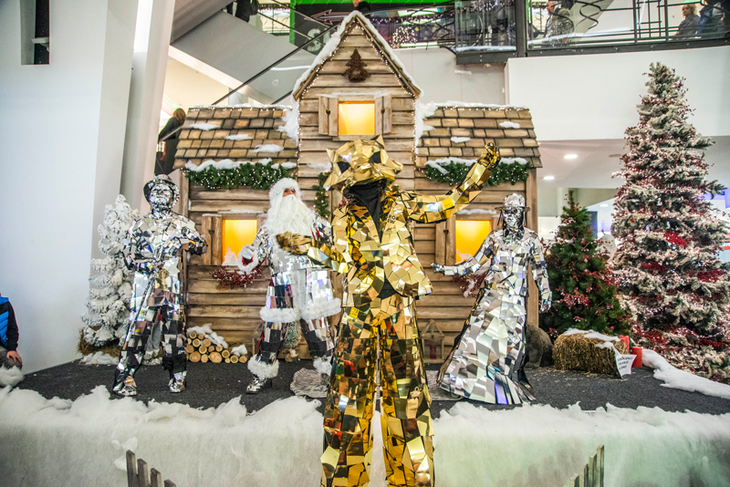 Mirror Santa Claus can roam around your venue interacting with people, giving presents, wishing everyone a Merry Christmas, posing for photos, etc.