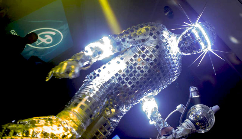 Bring sparkle to your event by booking this sensational Mirror Stilt Walker, a performer who not only stands out due to his height, but also due to his unbeatable desire to have fun! Dazzling people with an array of lights bouncing off its costume in all directions, this mirror giant will impress your guests with quite unique entertainment!