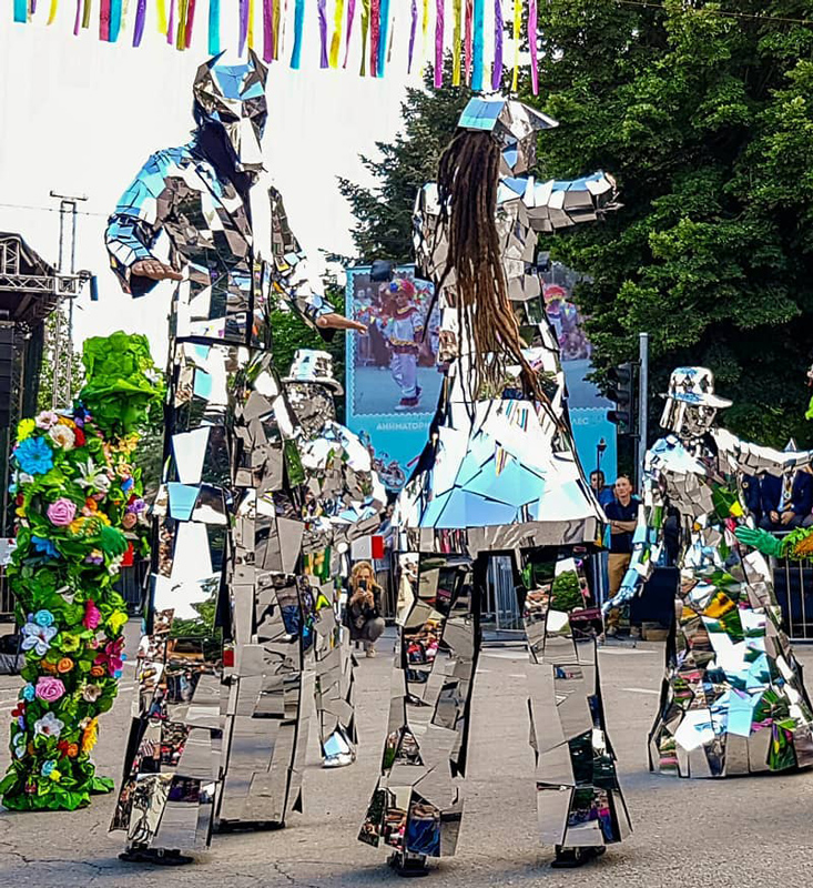 Hire walkabout entertainment for your upcoming event and ensure it is a memorable occasion. These Mirror Stilt Walkers will transform any space with their spectacular costumes, real masterpieces that reflect light off of them and make it bounce into the crowdÂ