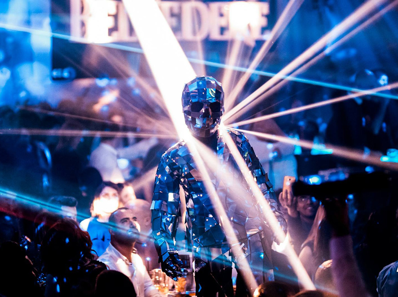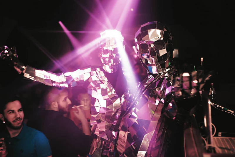 Also suitable for nightclubs and Halloween parties, our interactive mirror people will put their skull masks on for dark and spooky nights. Mirror skulls are big favourites for themed parties and evening parties and as the masks can include eerie red eyes that cause greater visual impact in the dark!