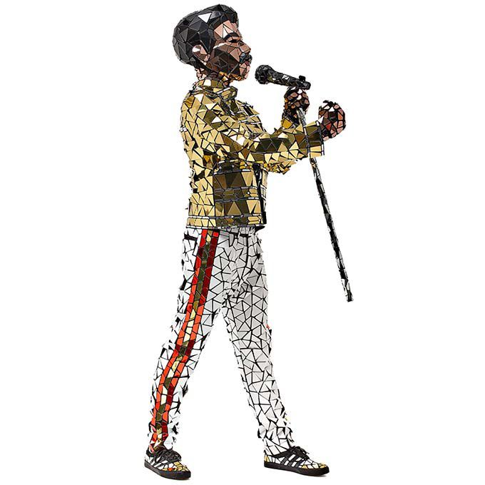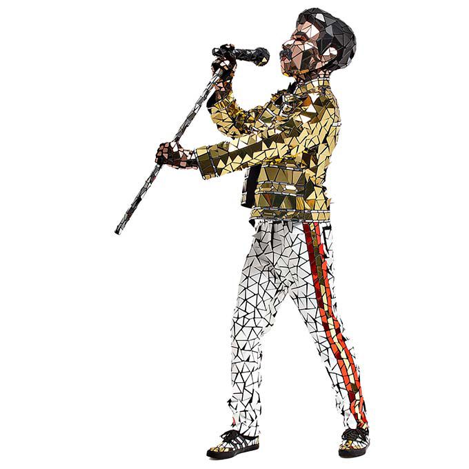 Our mirrored Freddie Mercury is sure to make an impression at your event as he interacts with guests, poses for photos and mimes into his microphone