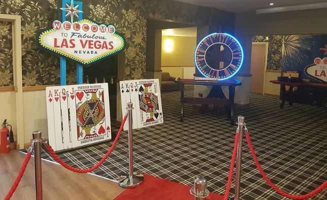 Available with fun money, poker chips, and professional croupiers to ensure that everything runs smoothly, our brilliant casino tables include a roulette table, blackjack table, poker table, Texas holdem poker table, and a craps/dice table, and we can also offer a Wheel of Fortune prize wheel.