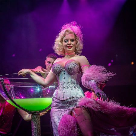 Her cheeky shows can be performed with supporting dancers or as an ambient set and a variety of sparkling outfits are available for customisation