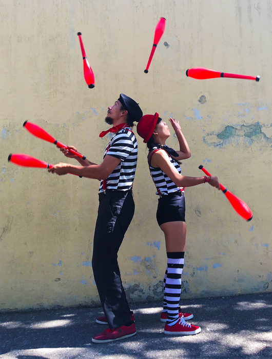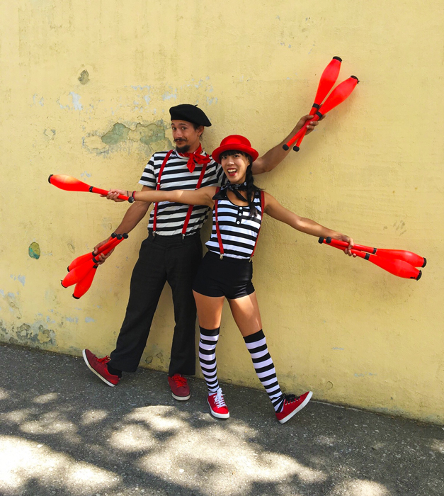 Oh la la! This wonderful French circus duo are a pair of charismatic street entertainers ready to wow your guests with their charm and superb skills. With dashing Frenchman good looks, Monsieur Magnifique is accompanied by his wonderful assistant Penelope. Both are dressed in a French theme with iconic stripy shirts. One thing for certain is that Monsieur Magnifique et Penelope fit the zany french stereotype perfectly.