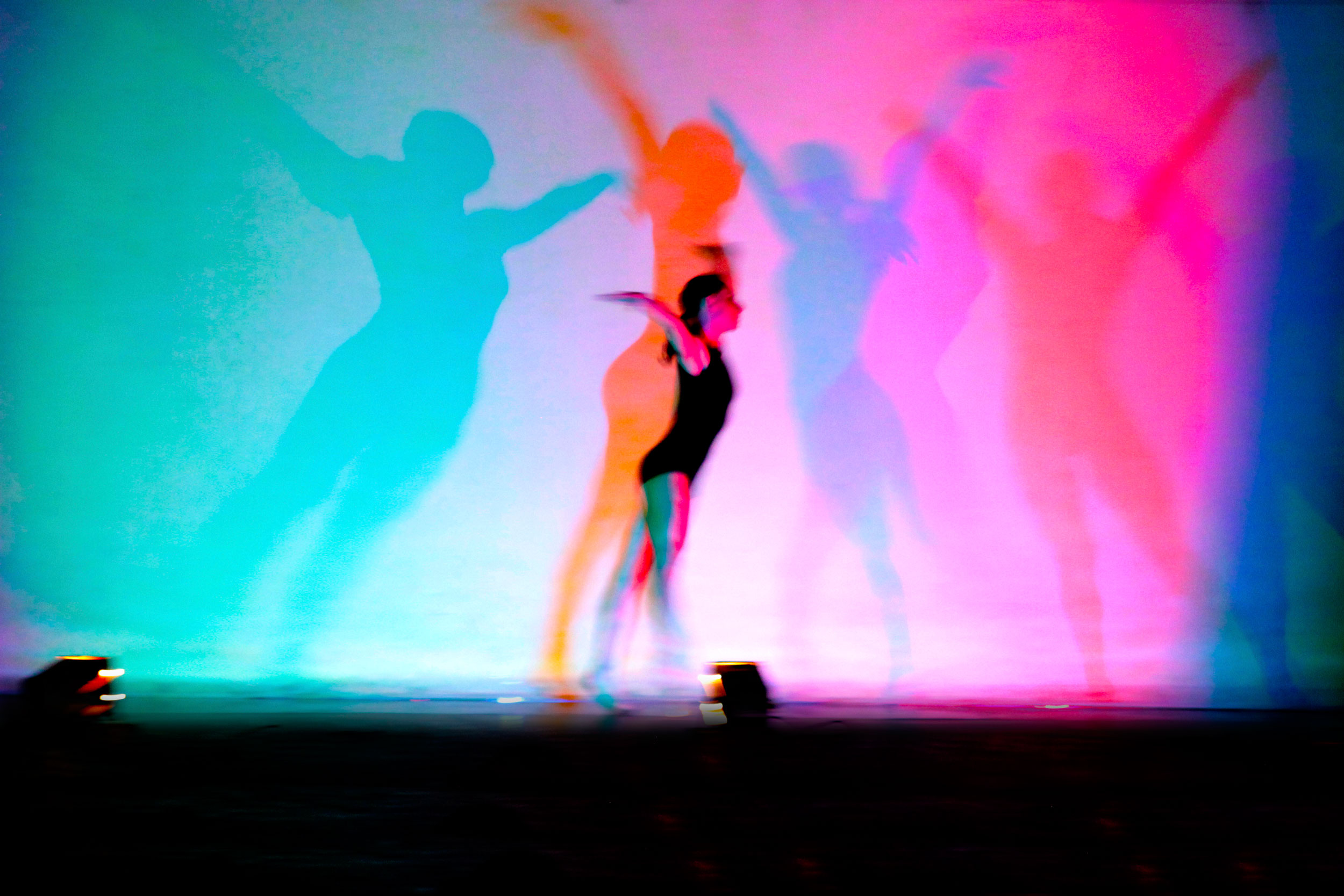 Always in search of an expressive and eclectic freedom, combining the plurality of research related to technology, dance, sound and colour, “Multi Colour Shadow Act” assures: