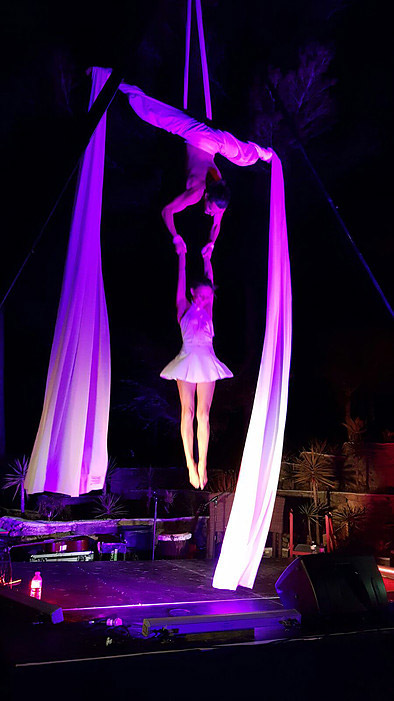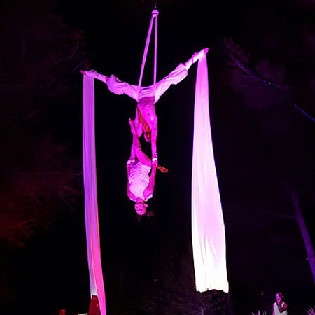 Book our highly skilled and intricate aerialists, and provide your upcoming special event or social gathering with an extreme and elegant aerial act that will captivate your guests. Our sexy and seductive aerial duo will hypnotise your guests with their visually alluring aerial performance. Delivering a high quality circus entertainment experience that is bound to make an impact and leave behind lasting impressions, our aerial performers will perform with expressive personalities and friendly qualities that will help them keep the attention of your guests throughout their performance.