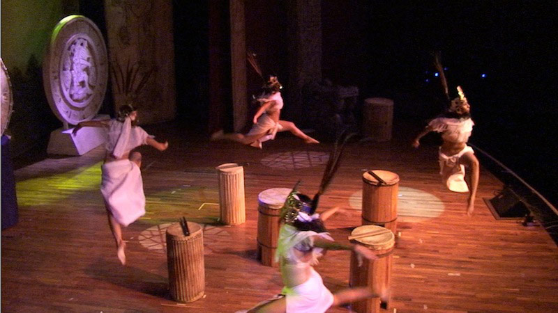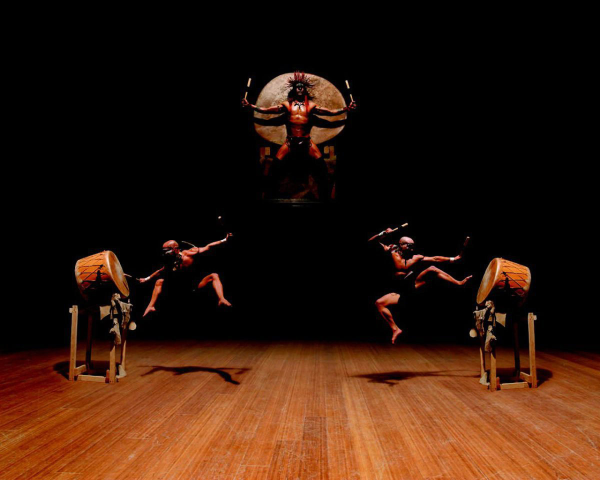 The dancers play the drums as they dance and the choreography varies depending on the theme of the piece. Although the dance and acrobatic movement is focused around the drum, there are other numbers that consist of ceremonial style dance and music.