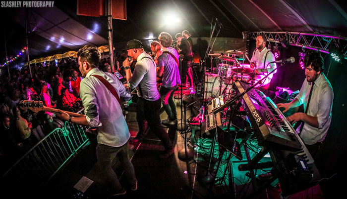 The live band is accustomed to large stages but enjoys intimate parties where they can create an impact on each and every guest and have the whole room jumping along to the music.