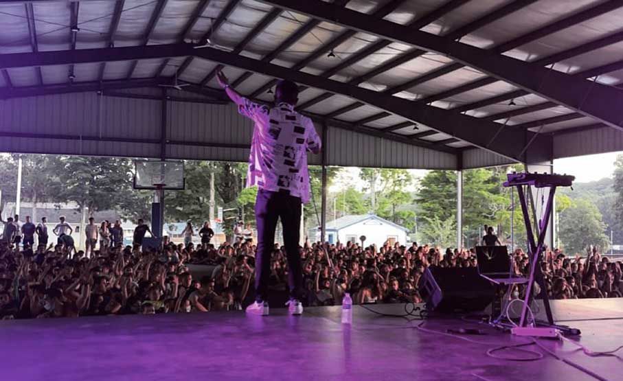 Our beatboxer uses his mouth to create high-energy, bass-thumping music through the intricate process of recording and layering of vocal sounds