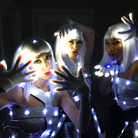 The magnificent custom made LED dresses have been fitted with dozens of beautiful glistening LED lights and the dancers are also properly accessorised with LED headpieces and gloves to make for an extra wow factor effect.