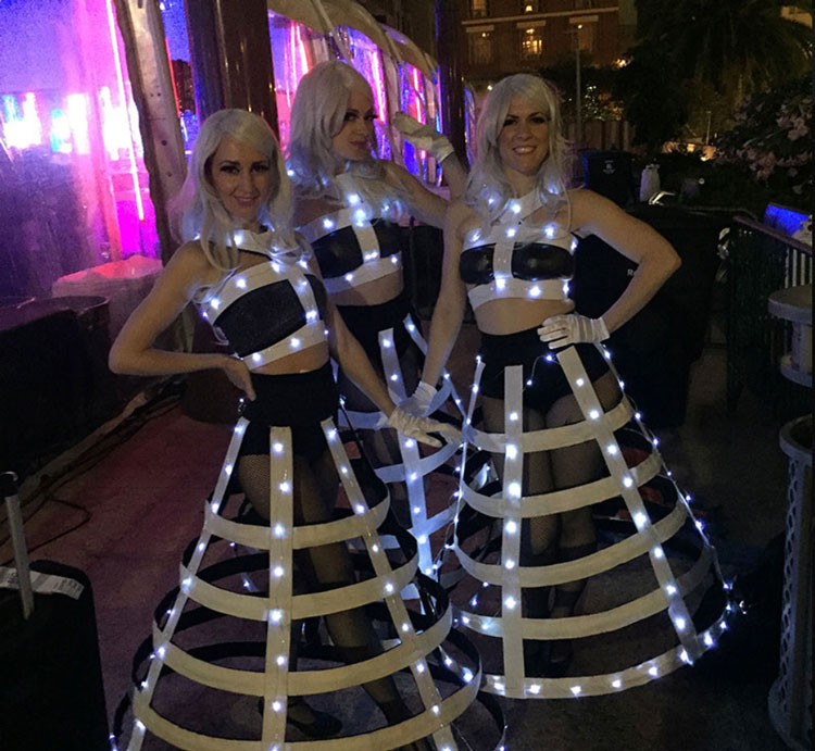 Our New York LED Dress Dancers also provide mix and mingle sets that interact with your guests as well as sparkling on stage.