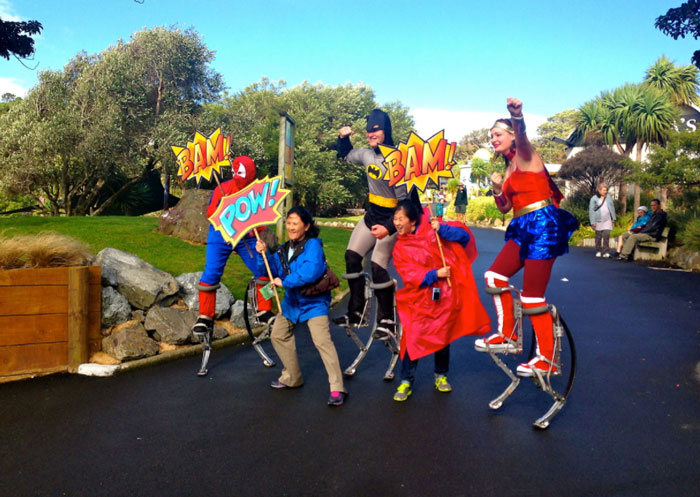 With multiple stilt walkers located in Auckland, Hamilton, Wellington, Christchurch and Dunedin, they are available for events all over New Zealand and can offer you several themes and walkers all at once.