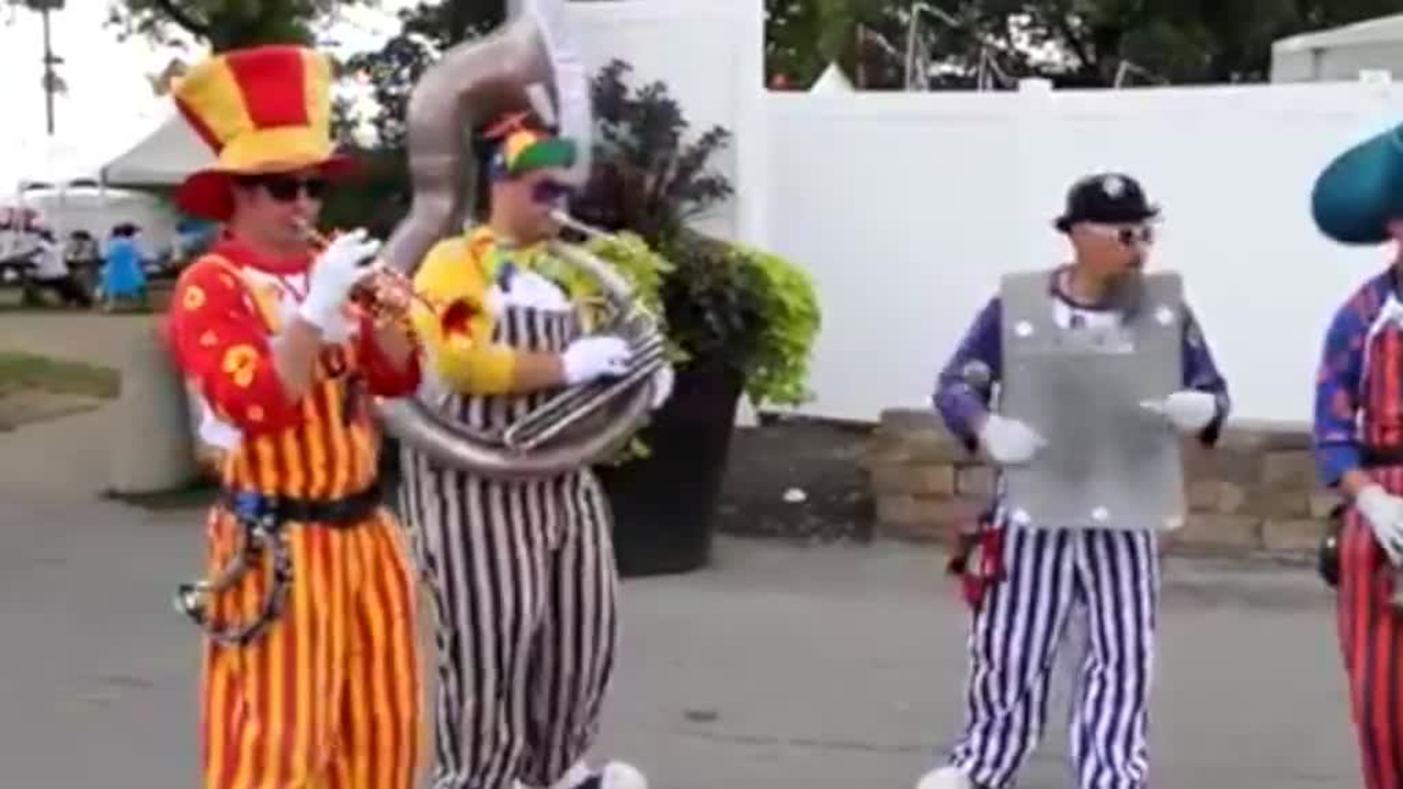 The 3-4 piece roving party band dresses in comical clown-like costumes and has several options to choose from