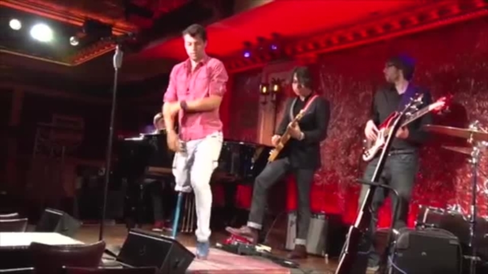 Dances, sings and plays guitar with his backing band and they have a wide repertoire of music