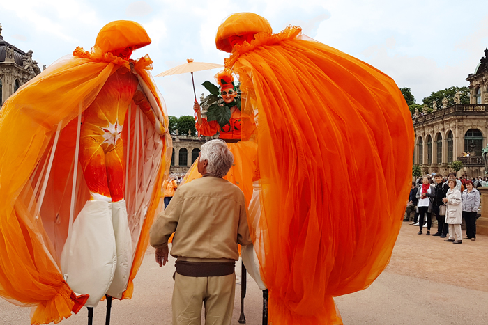 Orange Stilt Walkers Amsterdam