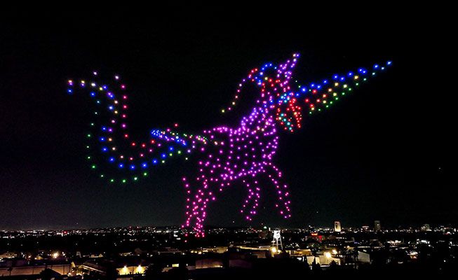 Drones can be used to create 3D shapes, logos, words and even QR codes - they are a perfect way to draw crowds at a nighttime event