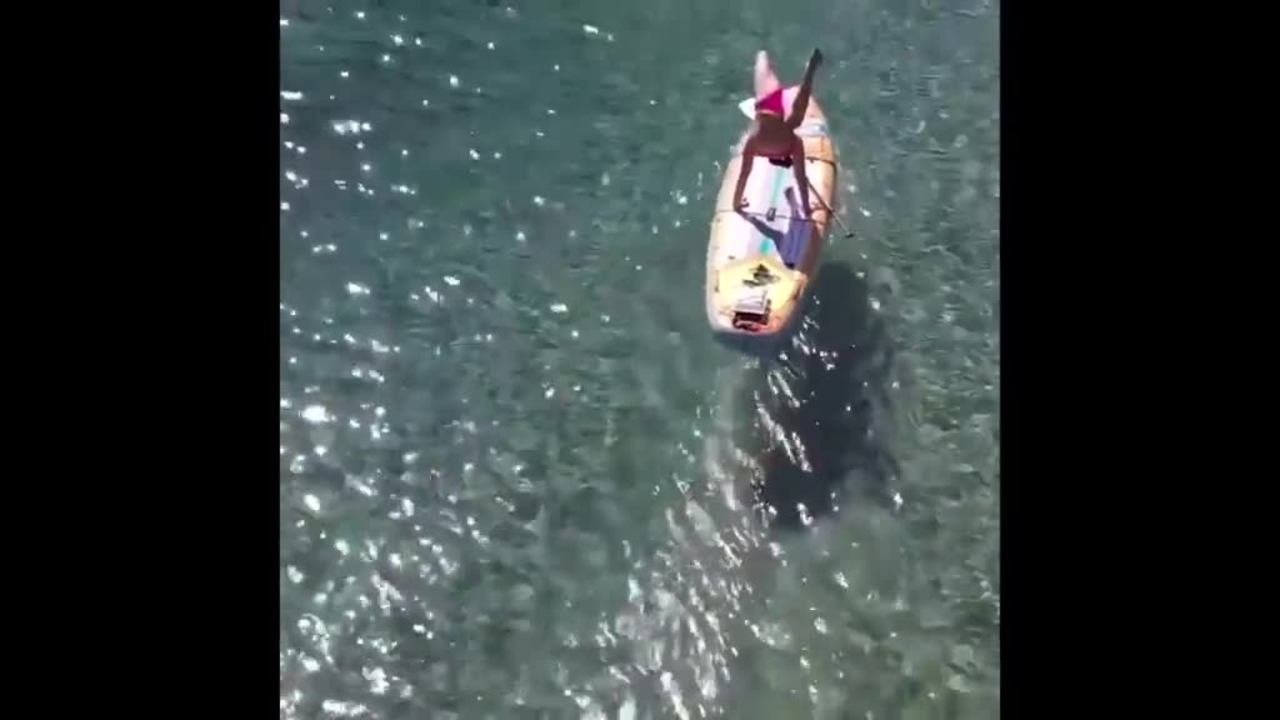 Our unique paddleboard contortionist combines body-bending routines with simultaneously staying afloat on her stand-up paddleboard